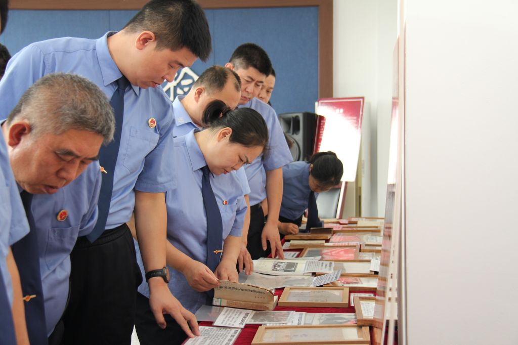 展览以时间为轴、以红色法治实践为脉,划分为“新民主主义革命时期”“社会主义革命和建设时期”“改革开放和社会主义现代化建设新时期”“中国特色社会主义新时代”四大板块,通过150余件珍贵法治文物文献的展陈,生动地展现了红色法治文化的发展脉络。在郭恒主任的讲解带领下,阳曲县人民检察院的干警依次参观了四个展区。每一件珍贵的实物展品背后,都是一段不能忘却的历史;每一页泛黄的司法文书之中,都藏着值得传承的精神根脉。干警们认真聆听每一段历史讲解,驻足凝视每一件珍贵文献,在重温中国法治文化的历史传承中感悟初心使命,坚定法治信仰。