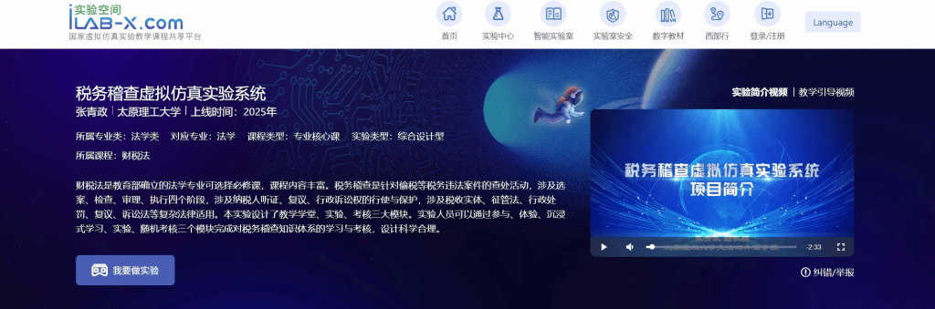 2025年,张青政副教授主持建设的《税务稽查虚拟仿真实验系统》上线国家虚拟仿真实验教学课程共享平台。