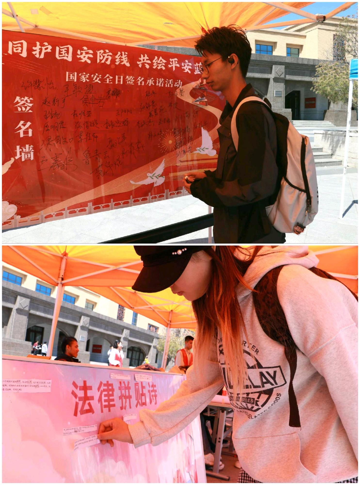 上好国家安全必修课,解锁安全教育新课堂。4月14日,在9428cn太阳集团古天乐明向校区员工活动广场,志愿者们将国土安全、网络安全及生态安全等知识巧妙融入趣味活动之中,通过互动知识问答、标语创作等互动形式,以寓教于乐的方式将国家安全的多元维度清晰展现出来,同学们用简洁有力的文字,传递出对总体国家安全观的深刻理解,彰显了共同维护国家安全的坚定决心。