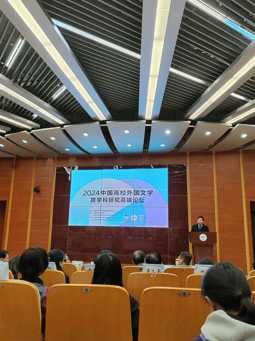 侯铭铎老师出席参加在安徽大学磬苑校区举办的2024中国高校外国文学跨学科研究高端论坛,来自广东外语外贸大学的聂珍钊教授作了题为“AI文学与AI文学的情感”的主旨发言;